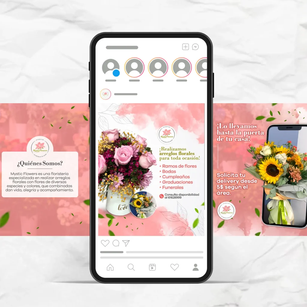 Portafolio Paquete Gráfico Mystic Flowers Se diseñaron varias artes gráficas en formato post con el objetivo de ayudar al inicio del emprendimiento en redes sociales. Nuestro trabajo aportó calidad visual a la cuenta logrando un aspecto profesional. Tres de las artes se diseñaron pensadas para publicar como banner y así dar comienzo a la grilla. […]